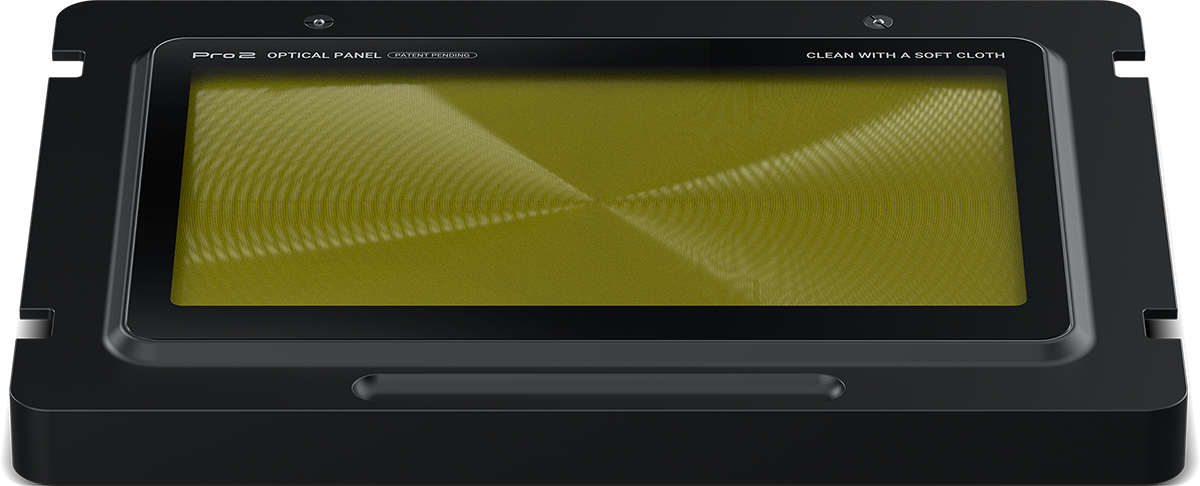 Panel optyczny jest umieszczony możliwie najbliżej zbiornika na żywicę, co pozwola osiągnąć rozdzielczość 35 µm i zerowe zniekształcenia – przy jednoczesnym zachowaniu dużego obszaru roboczego.