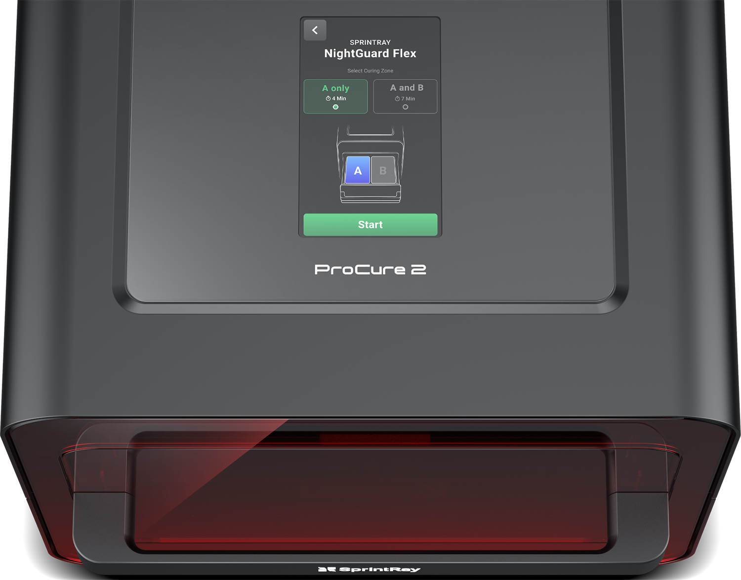 ProCure 2 działa błyskawicznie, umożliwiając natychmiastowe działania w gabinecie z wykorzystaniem technologii druku 3D SprintRay. Dzięki specjalnie zaprojektowanemu źródłu światła urządzenie nie wymaga wstępnego nagrzewania, co pozwala na natychmiastowe rozpoczęcie pracy.